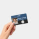 A basic business design that highlights your office logos and employee name. You can add a scan bar code on the front and back. You can also change the colour of the background.