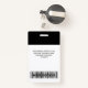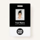 Easily personalise this Black and White Custom Employee Name Badge with Photo, Scan Bar Code and business logo. A simple business design in monochrome standard colours fully customisable in front and back sizes, sans-serif basic and modern fonts and a professional and clear look. Avaiable with lanyard, metal clip or with retractable. No minimum order.