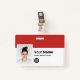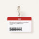 Easily personalise this Custom Employee Name Badge with Photo, Scan Bar Code and business logo, with metal clip included. A simple business design left-aligned in eyecatching red and white colours fully customisable in front and back sizes, sans-serif basic and modern fonts and a professional and clear look. Avaiable with or without lanyard, metal clip or with retractable. No minimum order.