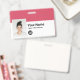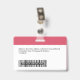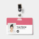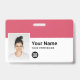 Easily personalise this Custom Employee Name Badge with Photo, Scan Bar Code and business logo, with metal clip included. A simple business design left-aligned in vibrant fuchsia pink and white colours fully customisable in front and back sizes, sans-serif basic and modern fonts and a professional and clear look. Avaiable with or without lanyard, metal clip or with retractable. No minimum order.