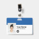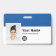 Easily personalise this Custom Employee Name Badge with Photo, Scan Bar Code and business logo, with metal clip included. A simple business design left-aligned in cobalt blue and white colours fully customisable in front and back sizes, sans-serif basic and modern fonts and a professional and clear look. Avaiable with or without lanyard, metal clip or with retractable. No minimum order.
