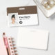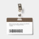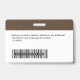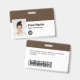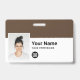 Easily personalise this Custom Employee Name Badge with Photo, Scan Bar Code and business logo, with metal clip included. A simple business design left-aligned in deep dark brown and white colours fully customisable in front and back sizes, sans-serif basic and modern fonts and a professional and clear look. Avaiable with or without lanyard, metal clip or with retractable. No minimum order.
