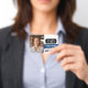 A basic business design that highlights your office logos and employee name. You can add a scan bar code on the front and back.