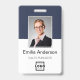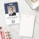 Easily personalize this custom blue employee name and photo badge with your own company logo and qr code or bar code. Available with different background colors and attachments. No minimum order quantity.
