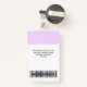 Easily personalise this lavender light purple Custom Employee Name Badge with Photo, Scan Bar Code and business logo. A simple business design in fresh pastel lavender light purple and white standard colours fully customisable in front and back sizes, sans-serif basic and modern fonts and a professional and clear look. Avaiable with lanyard, metal clip or with retractable. No minimum order.