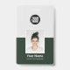 Easily personalise this Custom Employee Name Security ID Badge with Photo, Employee name, profession and business logo. A simple business design in cool stylish dark green and white colour fully customisable in front and back sizes, sans-serif basic and modern fonts for a professional and clear look. The id badges are avaiable with lanyard, metal clip or with retractable. No minimum order.