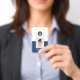 Easily personalise this Custom Employee Name Security ID Badge with Photo, Employee name, profession and business logo. A simple business design in navy blue and white colour fully customisable in front and back sizes, sans-serif basic and modern fonts for a professional and clear look. The id badges are avaiable with lanyard, metal clip or with retractable. No minimum order.