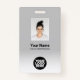 Easily personalise this Custom Employee Name Badge with Photo, Scan Bar Code and business logo featuring a white ombre gradient on light grey background colour. A simple personalised security id name tags business design in minimalist neutral grey and white colours fully customisable in front and back sizes, sans-serif basic and modern fonts and a professional and clear look. The id badges are avaiable with lanyard, metal clip or with retractable. No minimum order.