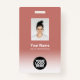 Easily personalise this Custom Employee Name Badge with Photo, Scan Bar Code and business logo featuring a white ombre gradient on terracotta light brown background colour. A simple business design in cool purple and white colours fully customisable in front and back sizes, sans-serif basic and modern fonts and a professional and clear look. Avaiable with lanyard, metal clip or with retractable. No minimum order.