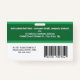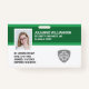 Durable, high-quality, double-sided custom company/hospital photo Identification badge. On the front, easily add your company logo (or delete), employee photo, name, title and id information. On the back add additional lines of custom text, i.e. business address, email, phone number, building location, etc. Also add a bar code, QR code or company logo - or delete. Current badge offers a green color scheme which can easily be changed to match your company colors.