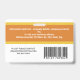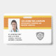 Durable, high-quality, double-sided custom company/hospital photo Identification badge. On the front, easily add your company logo (or delete), employee photo, name, title and id information. On the back add additional lines of custom text, i.e. business address, email, phone number, building location, etc. Also add a bar code, QR code or company logo - or delete. Current badge offers an orange-gold colour scheme which can easily be changed to match your company colours.
