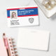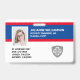 Durable, high-quality, double-sided custom company/hospital photo Identification badge. On the front, easily add your company logo (or delete), employee photo, name, title and id information. On the back add additional lines of custom text, i.e. business address, email, phone number, building location, etc. Also add a bar code, QR code or company logo - or delete. Current badge offers a red & blue color scheme which can easily be changed to match your company colors.