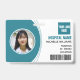 This horizontal medical photo ID badge features a modern white and light blue design.