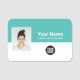 Easily personalise this Custom Employee Name Badge Tags with Photo and business logo. A simple business design in turquoise light blue and white colours fully customisable, sans-serif basic and modern fonts and a professional and clear look. Avaiable in rectangular, squared and round shapes, with round corners or edgy corners, in small, medium and large size, with safety pins. Dry erase name tag version is avaiable too. No minimum order.