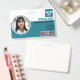 This horizontal medical photo ID badge features a modern white and light blue design with round customisable photograph.