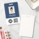 Easily personalise this Custom Employee Name Badge with Photo, Scan QrCode and Bar Code and business logo. A simple business design in navy blue and white colours fully customisable in front and back sizes, sans-serif basic and modern fonts and a professional and clear look. Avaiable with lanyard, metal clip or with retractable. No minimum order.