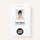 Easily personalise this Custom Employee Name Badge with Photo, Scan Qr Code (always readable, it works!) and business logo. A simple business design in modern black and white colours fully customisable in front and back sizes, sans-serif basic and modern fonts and a professional and clear look. Avaiable with lanyard, metal clip or with retractable. No minimum order.