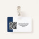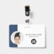 Easily personalise this Custom Horizontal Business Minimalist Employee Name Badge with Photo, Scan Qr Code or Scan Bar Code and business logo. A simple business design with round photo, in navy blue and white colours fully customisable in front and back sizes, sans-serif basic and modern fonts and a professional and clear look. Avaiable with lanyard, metal clip or with retractable. No minimum order.