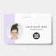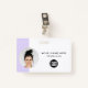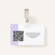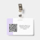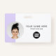 Easily personalise this Custom Horizontal Business Minimalist Employee Name Badge with Photo, Scan Qr Code or Scan Bar Code and business logo. A simple business design with round photo, in lavender violet and white colours fully customisable in front and back sizes, sans-serif basic and modern fonts and a professional and clear look. Avaiable with lanyard, metal clip or with retractable. No minimum order.