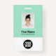 Easily personalise this Custom Employee Name Badge with Photo, Scan Qr Code (always readable, it works!) and business logo. A simple business design in cute mint green and white colours fully customisable in front and back sizes, sans-serif basic and modern fonts and a professional and clear look. Avaiable with lanyard, metal clip or with retractable. No minimum order.