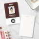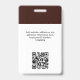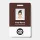 Easily personalise this Custom Employee Name Badge with Photo, Scan Qr Code (always readable, it works!) and business logo. A simple business design in dark chocolate brown and white colours fully customisable in front and back sizes, sans-serif basic and modern fonts and a professional and clear look. Avaiable with lanyard, metal clip or with retractable. No minimum order.