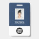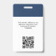 Easily personalise this Custom Employee Name Badge with Photo, Scan Qr Code (always readable, it works!) and business logo. A simple business design in navy blue and white colours fully customisable in front and back sizes, sans-serif basic and modern fonts and a professional and clear look. Avaiable with lanyard, metal clip or with retractable. No minimum order.