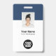 Easily personalise this simple Custom Employee Name Badge with Photo, Scan Qr Code (always readable, it works!) and business logo. A simple business design in navy blue and white colours fully customisable in front and back sizes, sans-serif basic and modern fonts and a professional and clear look. Avaiable with lanyard, metal clip or with retractable. No minimum order.