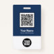 Easily personalise this Custom Employee Name Badge with or without Photo, Qr Code, Scan Bar Code and business logo. A simple business design in navy blue and white colours fully customisable in front and back sizes, sans-serif basic and modern fonts and a professional and clear look. Avaiable with lanyard, metal clip or with retractable. No minimum order.