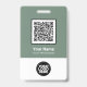 Easily personalise this Custom Employee Name Badge with or without Photo, Qr Code, Scan Bar Code and business logo. A simple business design in sage green and white colours fully customisable in front and back sizes, sans-serif basic and modern fonts and a professional and clear look. Avaiable with lanyard, metal clip or with retractable. No minimum order.