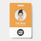 Easily personalise this Custom Employee Name Badge with Round Profile id Photo, Scan Bar Code and business logo. A simple business design in tangerine orange and white colours fully customisable in front and back sizes, sans-serif basic and modern fonts and a professional and clear look. Avaiable with lanyard, metal clip or with retractable. No minimum order.