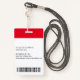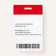 Create your own custom, personalised, durable PVC plastic, won't fade or tear, cool modern trendy red and white, name photo ID badge, with choice of attachments - lanyard, metal clip, retractable, or none. To personalise, enter the name of the employee / staff / executive, their designation, and any additional information like employee ID, issue & expiry date of the badge, if lost return to & the address, etc. Next add the photo of the employee / staff / executive, add the business / company logo, and add the barcode. While you type/design, you'll be able to see a preview of your badge, throughout. Great for small business, corporate, school, restaurant, office, concert, retail, hospital, clinic, and for employee, staff, doctor, teacher, student.