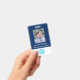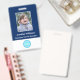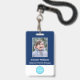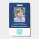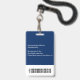 Create your own custom, personalised, durable PVC plastic, won't fade or tear, cool modern trendy navy blue and white, name photo ID badge, with choice of attachments - lanyard, metal clip, retractable, or none. To personalise, enter the name of the employee / staff / executive, their designation, and any additional information like employee ID, issue & expiry date of the badge, if lost return to & the address, etc. Next add the photo of the employee / staff / executive, add the business / company logo, and add the barcode. While you type/design, you'll be able to see a preview of your badge, throughout. Great for small business, corporate, school, restaurant, office, concert, retail, hospital, clinic, and for employee, staff, doctor, teacher, student.