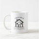 Modern and minimalist realtor coffee mug you can easily customise with your business name and website by using the "Personalise" button. A perfect gift for a client, a house buyer, or a realtor featuring an outline of a house and script and modern typography.