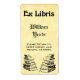 A custom bookplate reading Ex Libris in a gothic letters with room for your own name in vintage letters on a faux parchment background and room for your return address. A simple stack of books in an antique etched art style in black and white are on each side.