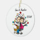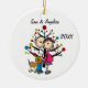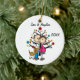 A cute, fun ceramic ornament featuring a stick figure expectant couple, a dog, and a holiday tree with an area you can add your names or surname and the add the current year!