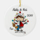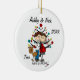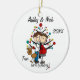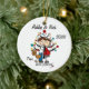 A cute, fun ceramic ornament featuring a stick figure expectant couple, a dog, holiday tree, and text that reads "We're Expecting!" with an area you can add your names or surname, the dog's name, and the add the current year! You can also customise the back of this cute stick figure holiday ornament!