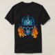 Modern elegant graphic artwork in vibrant colour, featuring monster in blue with red eyes and fire. On the back side you can add your own text.