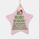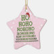 Humourous Santa "Ho Ho Ho" ophthalmologist eye chart and custom name ceramic ornament. Customise and personalise with custom name, Christmas greetings text, Christmas year and more. Cool stars and pink background (customisable and removable if desired) Ideal ornament for a medical doctor family, boyfriend, or doctor's office Christmas tree ornament.