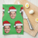 Custom Face Photo Santa Hat Christmas Green Tea Towel