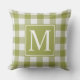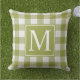 Farmhouse country style autumn green and white gingham plaid pattern, with the option to customise or personalise with a family name monogram of your choice. Fun pretty fall coloured outdoor cushion to adorn your patio or cabin porch with and get in the mood for fall season, the Thanksgiving holiday and Halloween.