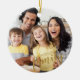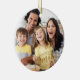 Create a family keepsake holiday ornament with 2 photos featuring a handwritten script typography title FAMILY in an editable gold colour personalised with a family name and year. Start or keep up a family ornament tradition or give as gifts to family and friends. Makes a great gift to share with family and friends. CHANGES: You can change the colour of the font overlay for easier reading on your picture by clicking on the CUSTOMIZE FURTHER tab. For modifications or assistance, contact the designer BEFORE ORDERING via Zazzle Chat or makeitaboutyoustore@gmail.com.