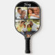 Custom Family 3 Photo Collage Trendy Black Pickleball Paddle