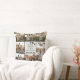 Modern and stylish custom lumbar throw pillow design features a photo collage of three (7) favourite style photos with a simple and minimal black "Family" typography design that includes elegant flourish and heart details. The text and colours can be modified.