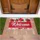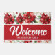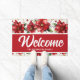 Custom Family Name Monogram Red Floral Christmas Doormat
