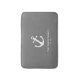 This dark grey bath mat has a white ship's anchor and a place to personalize the bath mat with the family's name and year established. All text is white. The text can be edited or deleted.