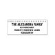 This basic rubber stamp design features a personalised family name and a personalised address. It also features a row of square shapes.