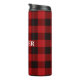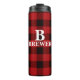 This design features a red and black tartan pattern along with a monogram in the centre of the tumbler. You can personalise this item with your initial and family's last name by using the custom template.