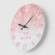 Custom Family Name Rose Gold Glitter and Marble Large Clock