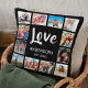 Create your own personalised 12 photo collage, throw pillow with your custom images on a simple modern black background. The pillow face also features your family name, established year and a "Love" handwritten script. Add your favourite photos, designs or artworks to create something really unique.