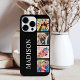 Create your own personalised 4 photo collage, phone case with your custom images on a simple modern black background. The phone case face also features your name. Add your favourite photos, designs or artworks to create something really unique.